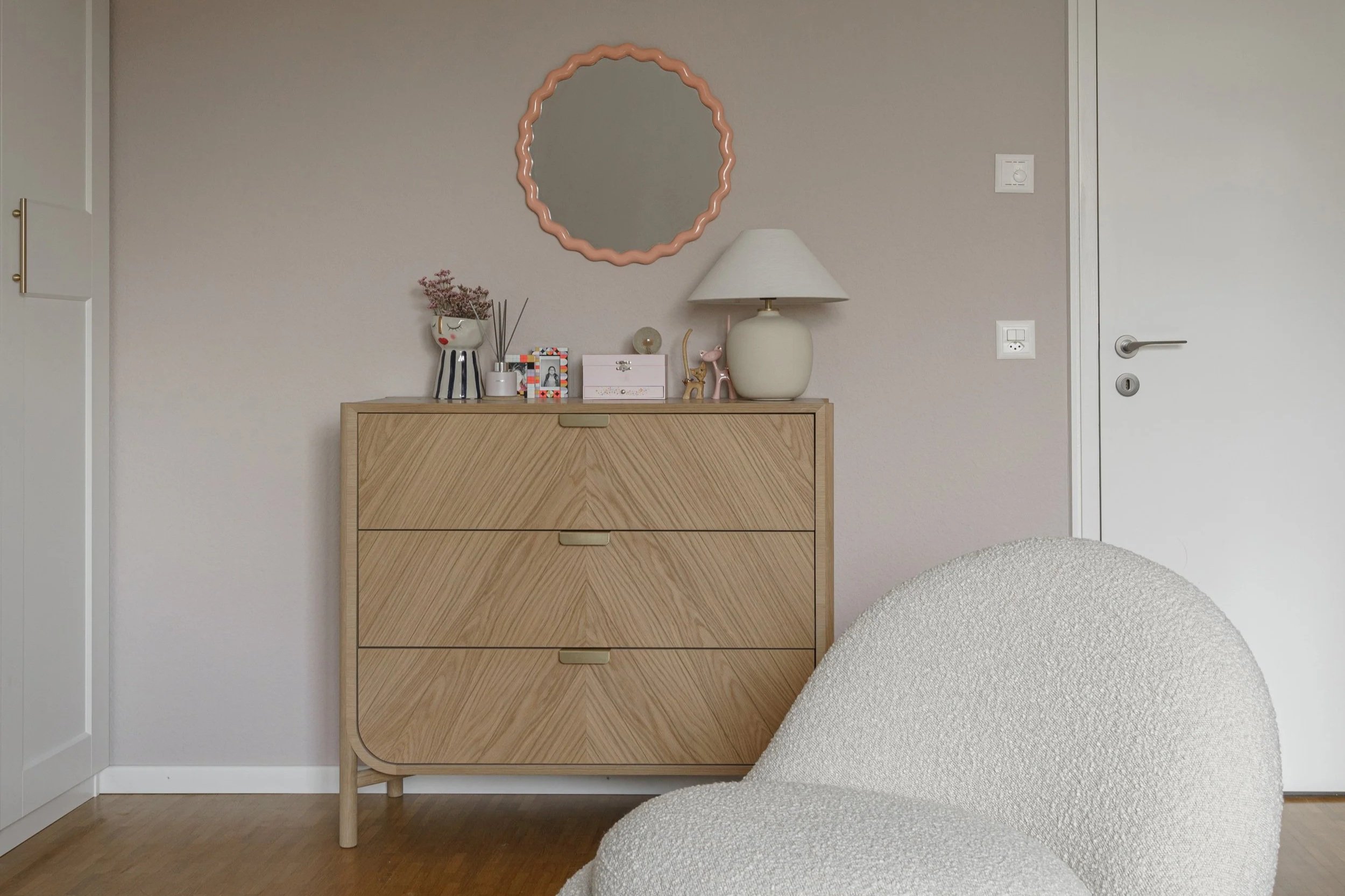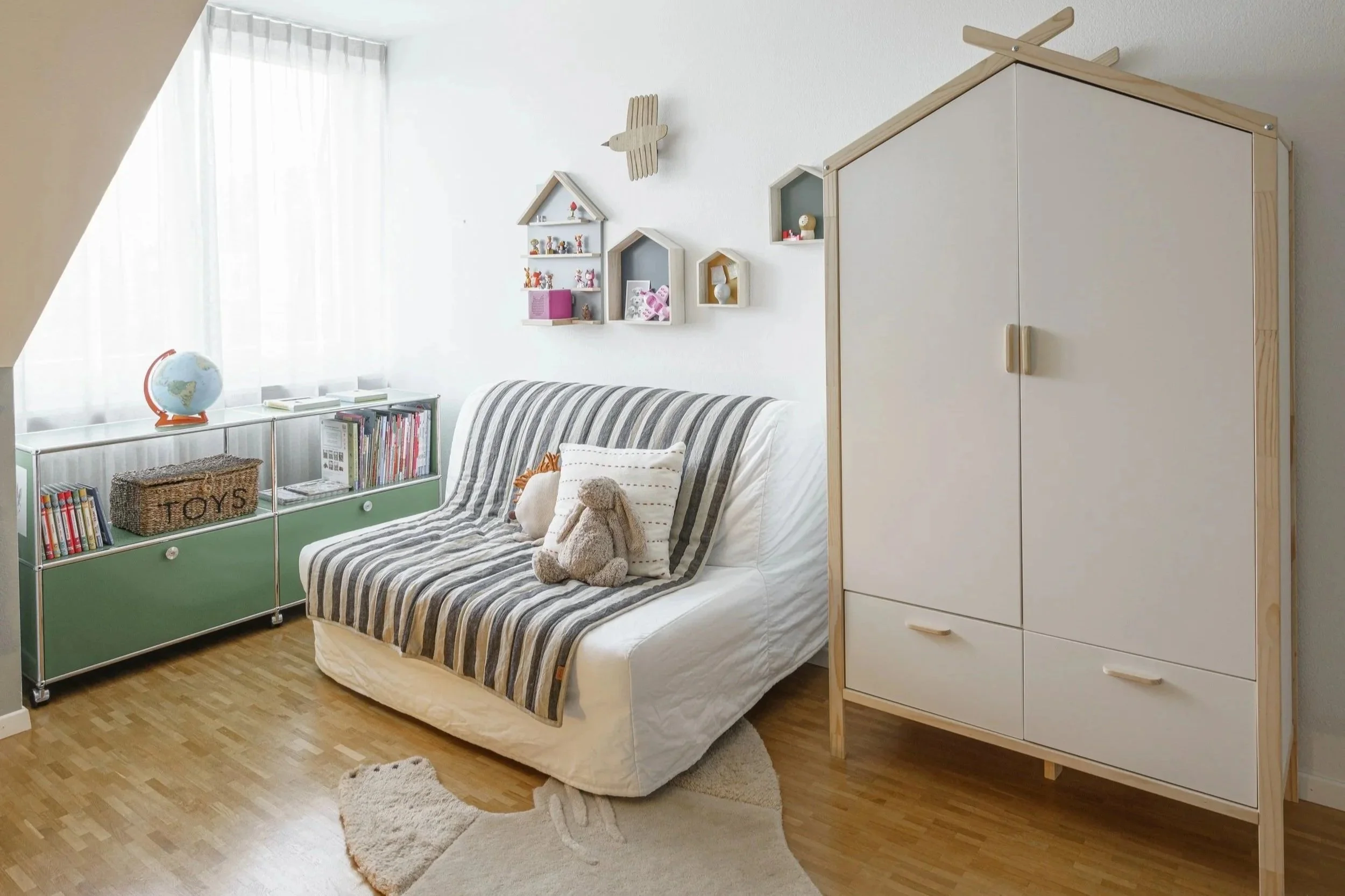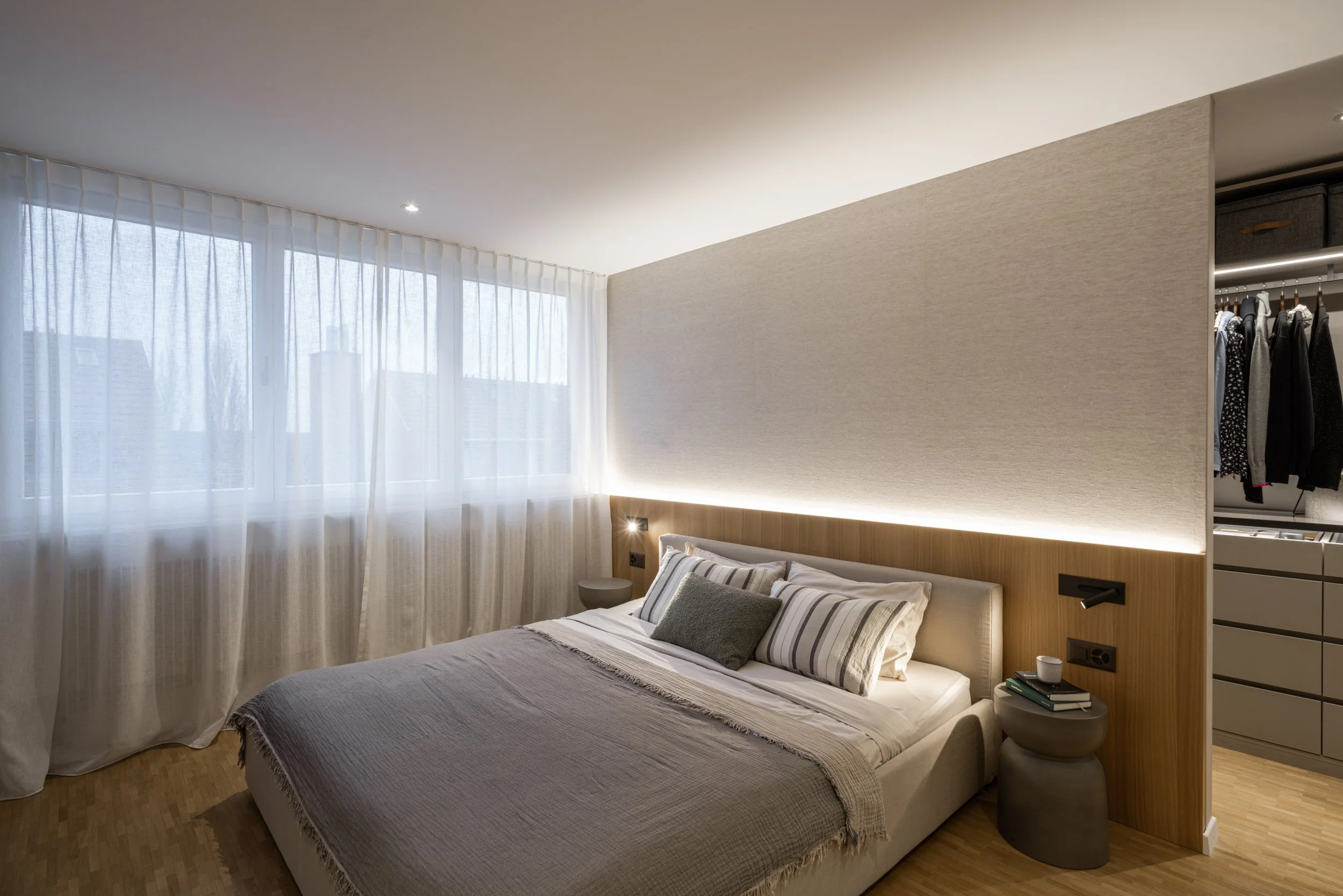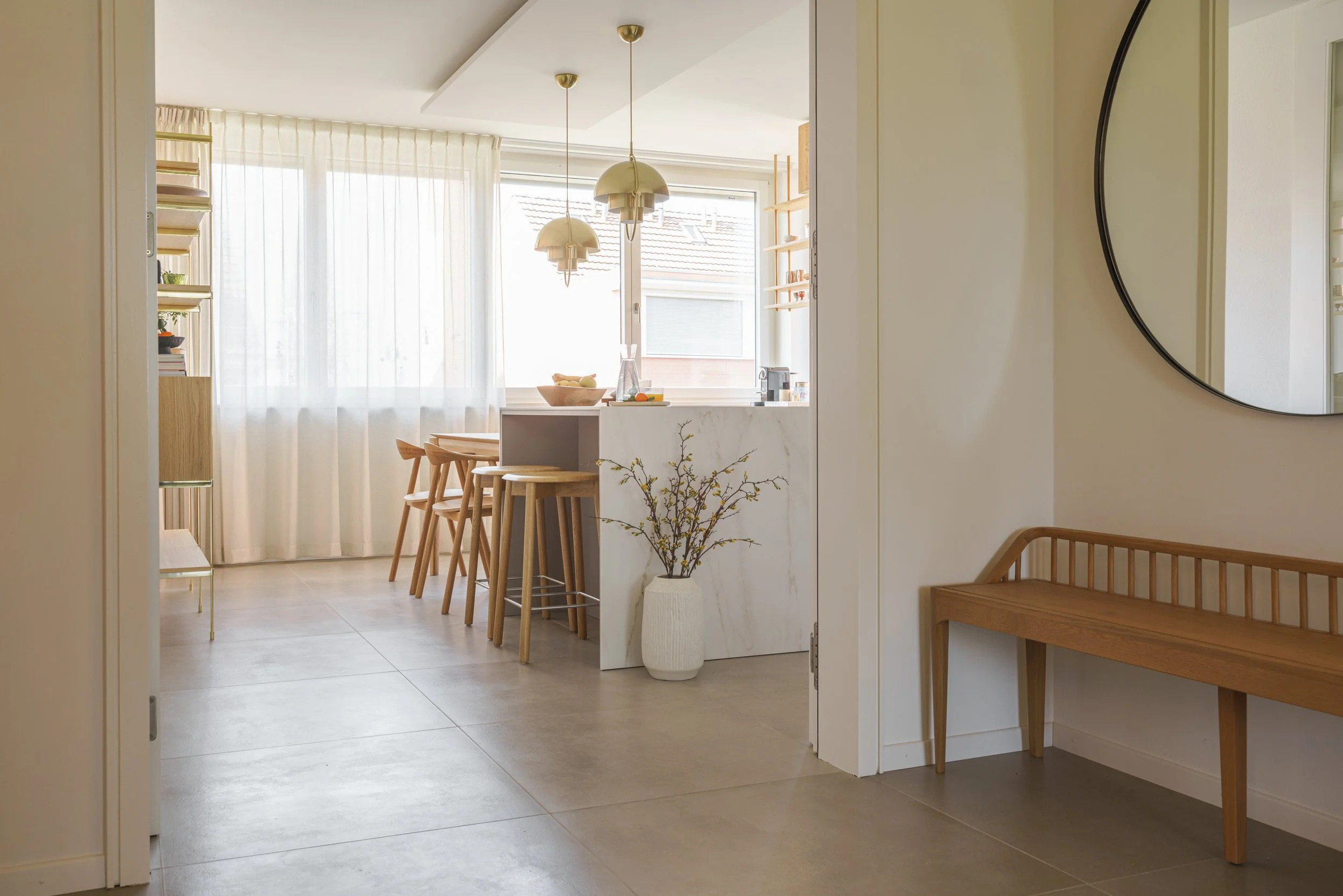Nestled in the tranquil surroundings of Basel-Landschaft, Maison Modern embodies a harmonious blend of contemporary design with subtle French-chic influences — a dialogue that beautifully complements the apartment’s original French doors.