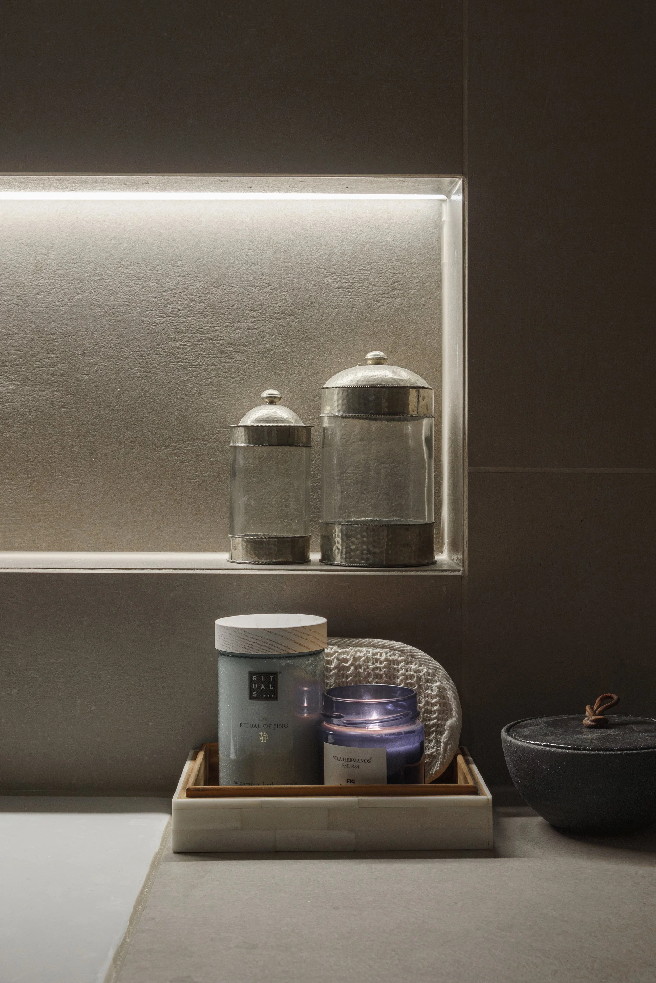 While preserving the architectural essence of the space, we introduced thoughtful updates to enhance both functionality and aesthetics. Warm, textured materials such as linen wallpaper and plaster walls were used to create a cohesive yet eye-catching backdrop, accented with brass and bronze details.
